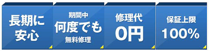 メーカー保証期間が終了してしまっても、正常な使用状態でお使いいただいているにもかかわらず発生した故障・不具合について、無料で修理をご利用出来ます。